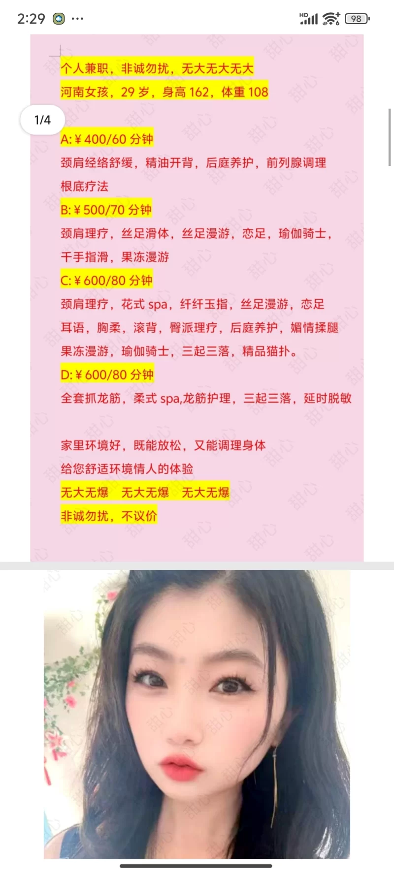 自己看吧都在图里了,帮大家问过了无口无爆 纯小活,图个年轻漂亮性价比吧
